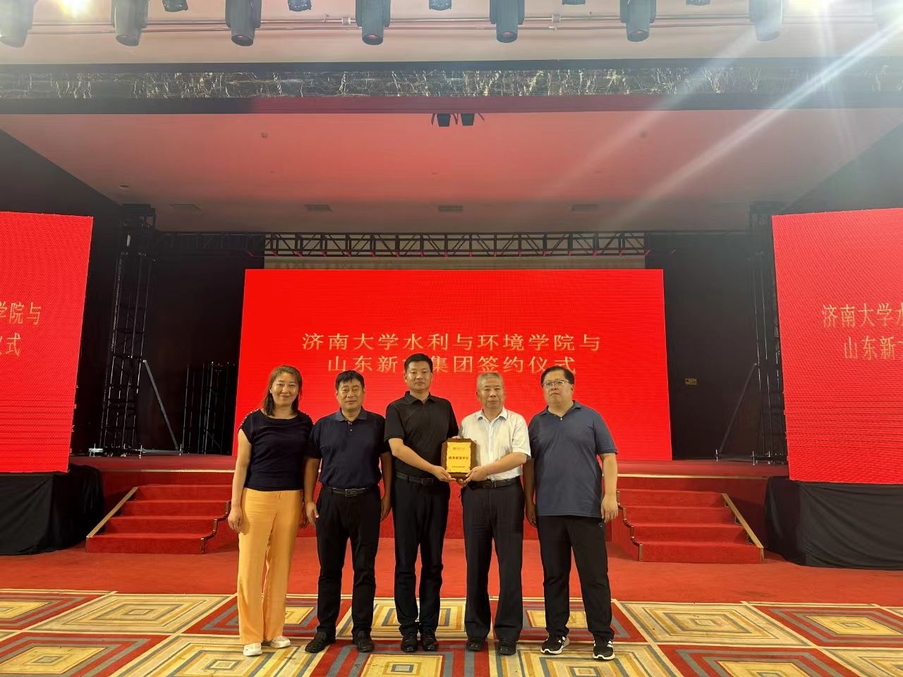 王义介绍了学院办学特色、学科发展、人才培养、社会服务等方面的基本情况。曹鸿胜从公司资质、发展沿革、核心业务、地域拓展等方面作了简要介绍。随后双方就当前形势下行业发展趋势、人才供需对接和学生就业实习等多方面进行了深入交流和探讨,王仲鹏与曹鸿胜共同为“济南大学水利与环境学院就业联盟单位”揭牌。