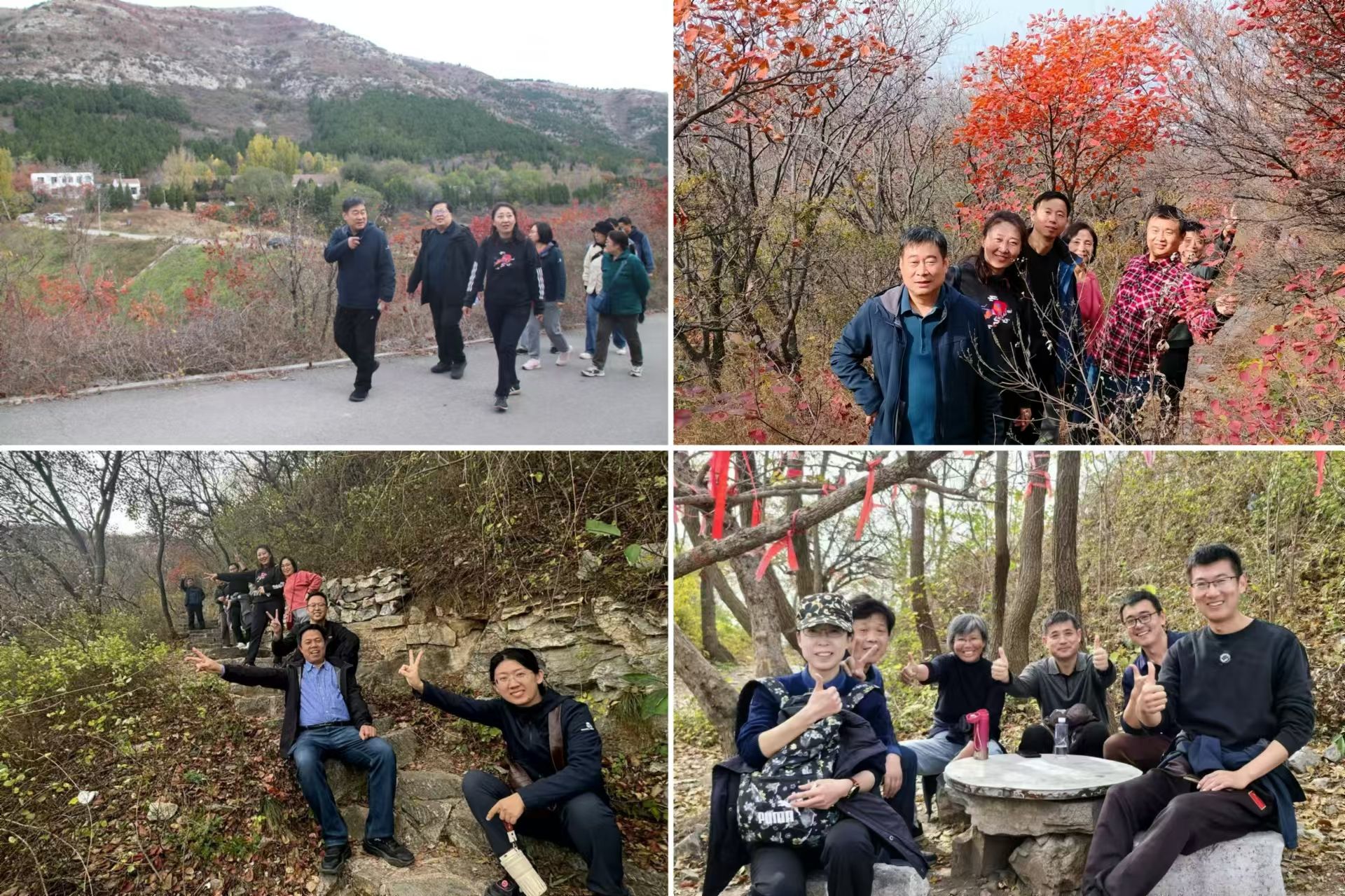 伴随着清晨的阳光,整个团队分为三个梯队从胡山四峪登山口向山顶进发。沿途,石阶蜿蜒,漫山红遍,他们一路欣赏风景,身心愉悦,感受大自然的魅力;一路相互鼓励,加油打气,展现了团队协作精神。历经一个多小时坚持不懈努力,全体成员历经体力与意志的考验成功登顶,全程用时四个多小时。