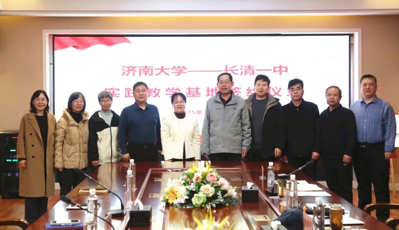 2025年3月5日下午,济南大学实践教学基地签约揭牌仪式在长清一中举行。济南市长清区教育体育局工会主席房泽平、长清区教育教学研究中心负责人刘光顺、长清一中副校长李春亮,济南大学教务处副处长兼师范教育管理办公室主任张婷、水利与环境学院党委书记王义、地理专业负责人刘展宏等出席了本次活动。
