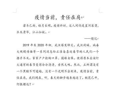 为了激发同学们的爱国主义情怀、弘扬时代正能量,展现中华民族在复兴之路上不屈不挠、愈战愈勇的民族精神,水利与环境学院自律会心理健康部开展“战疫路上,你我同行”主题征文活动。