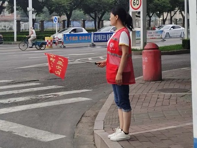 8月14日早上7点家在东营市广饶县的“青春微光”社会实践团队员赵海迪到交通局领取指挥旗和志愿服务服装后,来到一处繁忙的十字路口辅助交警指挥交通。在一上午的志愿服务中,赵海迪同学阻止行人闯红灯两次,搀扶老人过马路四次,与警察叔叔一起保证了早高峰的道路安全。与此同时,家在济南市长清区的两位“青春微光”社会实践团的队员房晓冉和李成坤同学在卫生室社区志愿服务中心进行场地消毒、打扫卫生等工作,保证社区的干净整洁。通过志愿服务,成员们体会到了警察叔叔的辛苦和遵守交通规则的重要性,明白了创建文明城市离不开我们每个人的努力。
