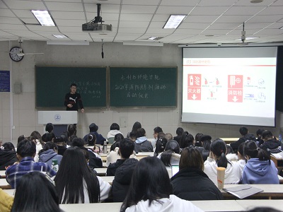 环抱碧水青年志愿协会志愿者李文博主讲,各班级学生代表到场参加。
