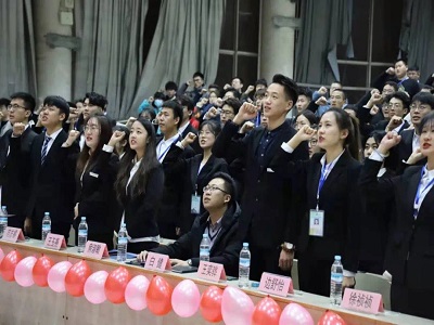 大会致辞结束后,白老师为主席团成员颁发聘书和胸牌,主席团成员为各部部长颁发聘书和胸牌。随后,房淑敏作为主席团代表上台发言介绍第十一届学生会发展现状,向20级全体干事表示欢迎,表达对学生会的美好祝福。然后,学生会干事代表张晓芙上台发言,她代表全体干事对指导老师和主席团、部长团表达衷心的感谢,传达出学生会新成员认真负责、勇于担当的信念。大会最后,全体成员宣誓并观看学生会成立视频,全体成员拍照留念,记录下学生会成员相聚的珍贵画面,加强了学生会成员对学生会的归属感。
