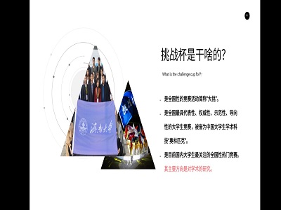 在本次宣讲中,首先由王翘楚同学为大家具体介绍挑战杯的比赛内容、比赛要求、比赛项目类别、申报书具体填写要求以及挑战杯与创青春的区别。随后向同学们细致讲解挑战杯和偷拍自慰