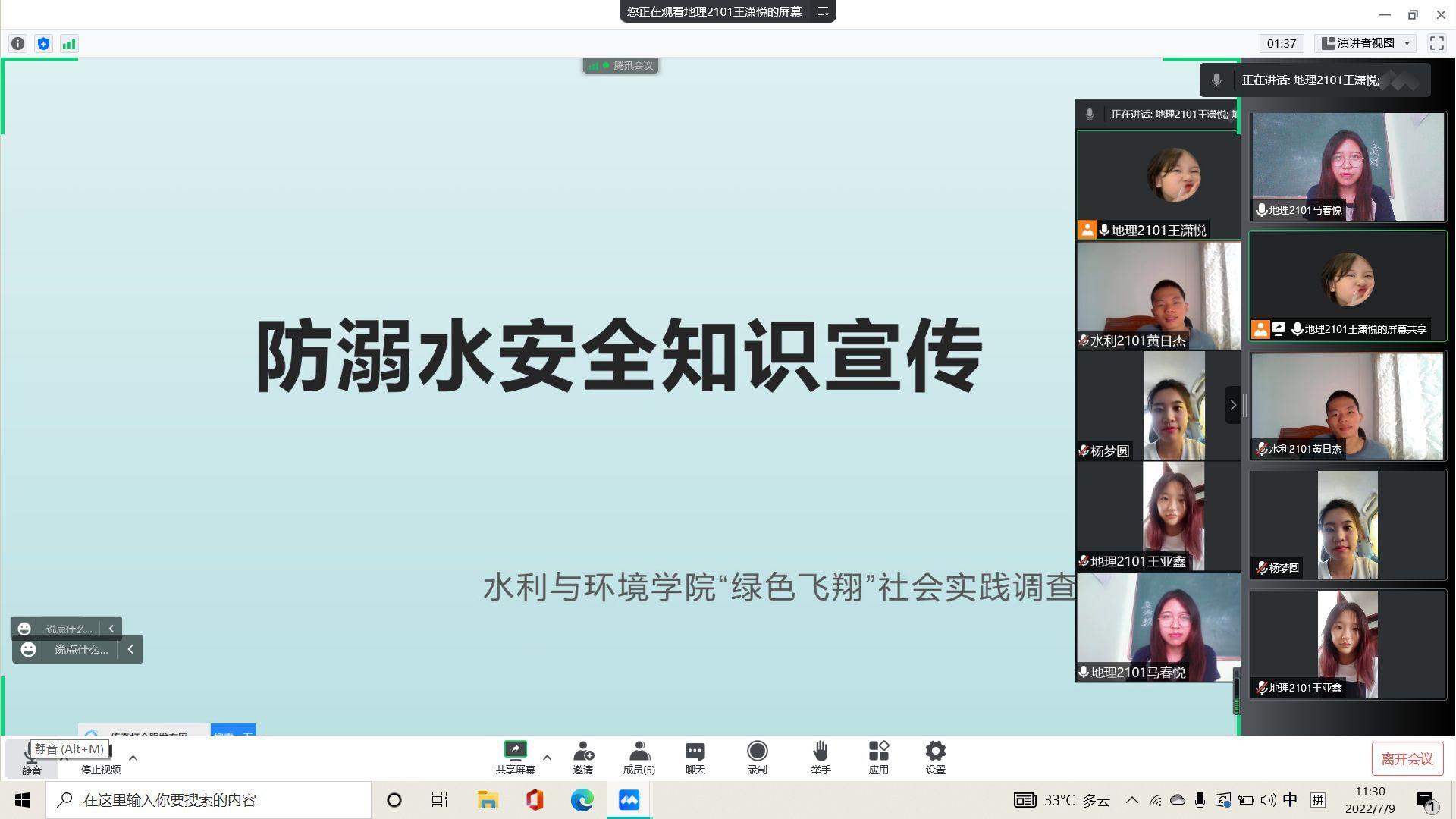 “绿色飞翔”社会实践调查团的王潇悦、马春悦、杨梦圆、黄日杰、王亚鑫在白健老师的指导下于7月15日——7月23日,围绕“关于防溺水的现状的调查研究以及知识宣传”这一主题,在潍坊、德州、成都、桂林四个地方,开展一系列针对青少年的防溺水安全教育宣传。