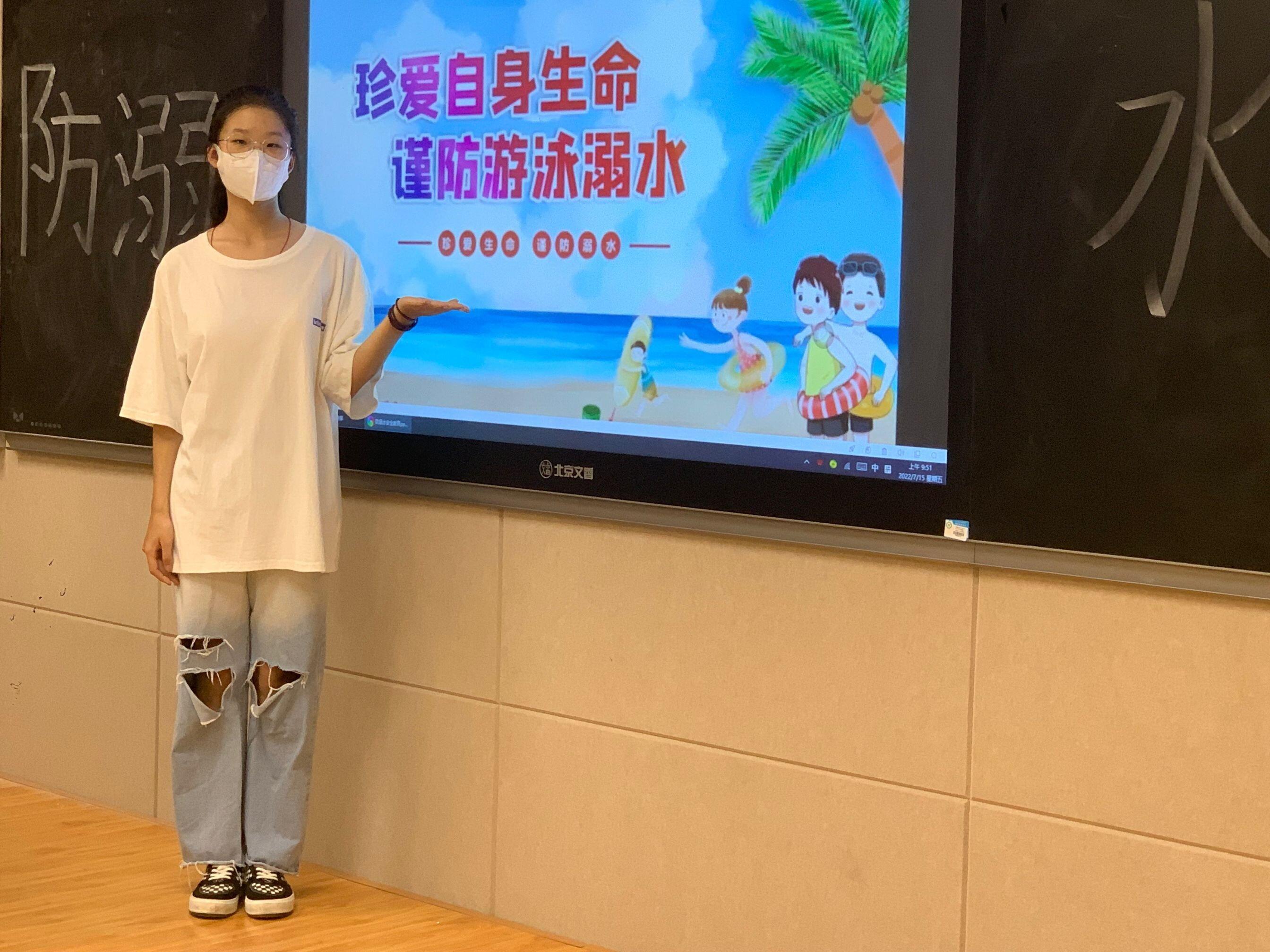团队成员王潇悦来到了山东潍坊当地一所小学开展了防溺水安全宣讲。在播放宣传视频后,王潇悦同学采用快问快答小游戏的方式,加强同学们对防溺水知识的记忆和理解。同学们对这种学习形式的接受程度非常高,对于防溺水知识的意识也是更为牢固,积极地为预防溺水出谋划策。许多学生向其表示以后会远离河岸,并积极要求担当防溺水安全小卫士。通过后期对于学生们的调查,本次宣讲有效的传播了防溺水安全教育知识。通过此次实践活动,王潇悦感受到了青少年安全教育工作的意义,收获了自身的社会价值。