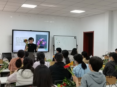 于3月7日组织开展“三八”妇女节插花活动,邀请花艺师进行现场授课,学院全体女教职工参与本次活动。