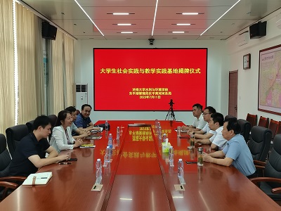 张良红与黄兆生共同为“大学生社会实践基地”揭牌,庞桂斌与彭程共同为“实践教学基地”揭牌。