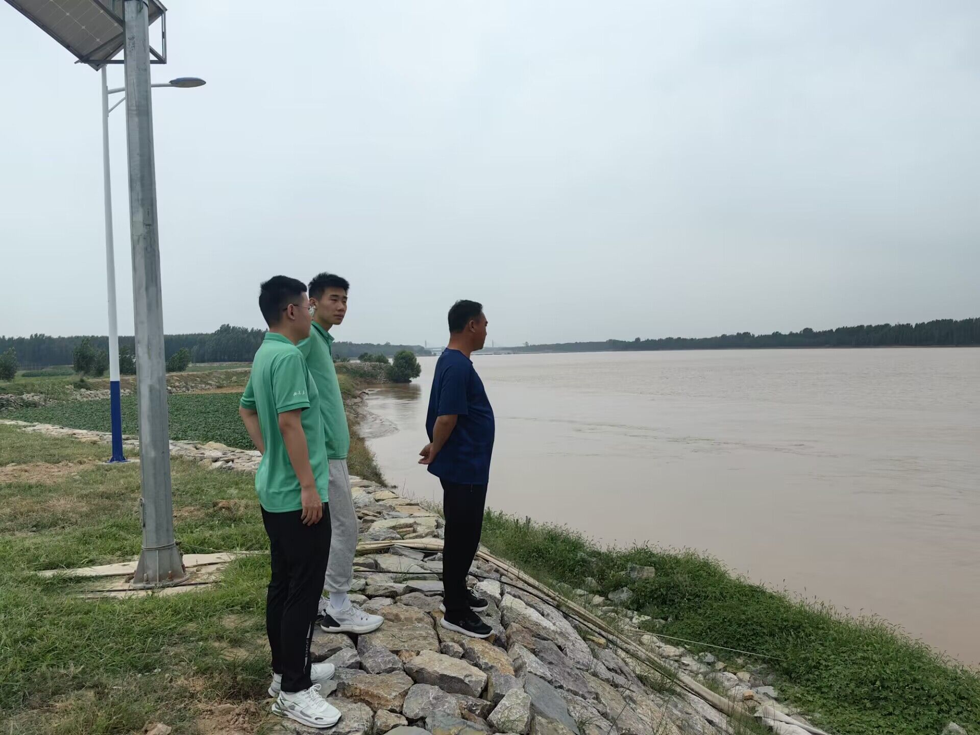 据工作人员介绍,班鸠店管理段通过荫柳棵工程和黄庄工程两项控导工程对黄河进行管理。控导工程是为控导主流、稳定河势而修建的河道整治工程,是保障黄河下游防汛安全必不可少的重要措施之一。在工作人员的带领下,成员们通过实地观测水尺和监控巡查的方式,检测了黄河的水势水位。现场工作者还提到,在水位高和水势大的时候,要重点注意其退水速度,如果退水过快,河岸堤坝附近易引发局部小滑坡,同时当流量大于5000时,需启动紧急预案并及时撤离附近居民以保证人民生命财产安全。在实践过程中,团队成员发现在东平湖沿岸,除了有储蓄湖水功能的工程外,还延伸出了旅游业和集聚性的渔业。在对周边居民进行采访后,成员们得知,随着居民搬迁、南水北调工程的开发等一系列措施的实施,东平湖的水位逐渐趋于稳定,从而保障了附近居民的正常生产生活,同时稳定的水质也为水上运动和休闲度假提供了更好的条件,吸引了更多的游客前来体验。