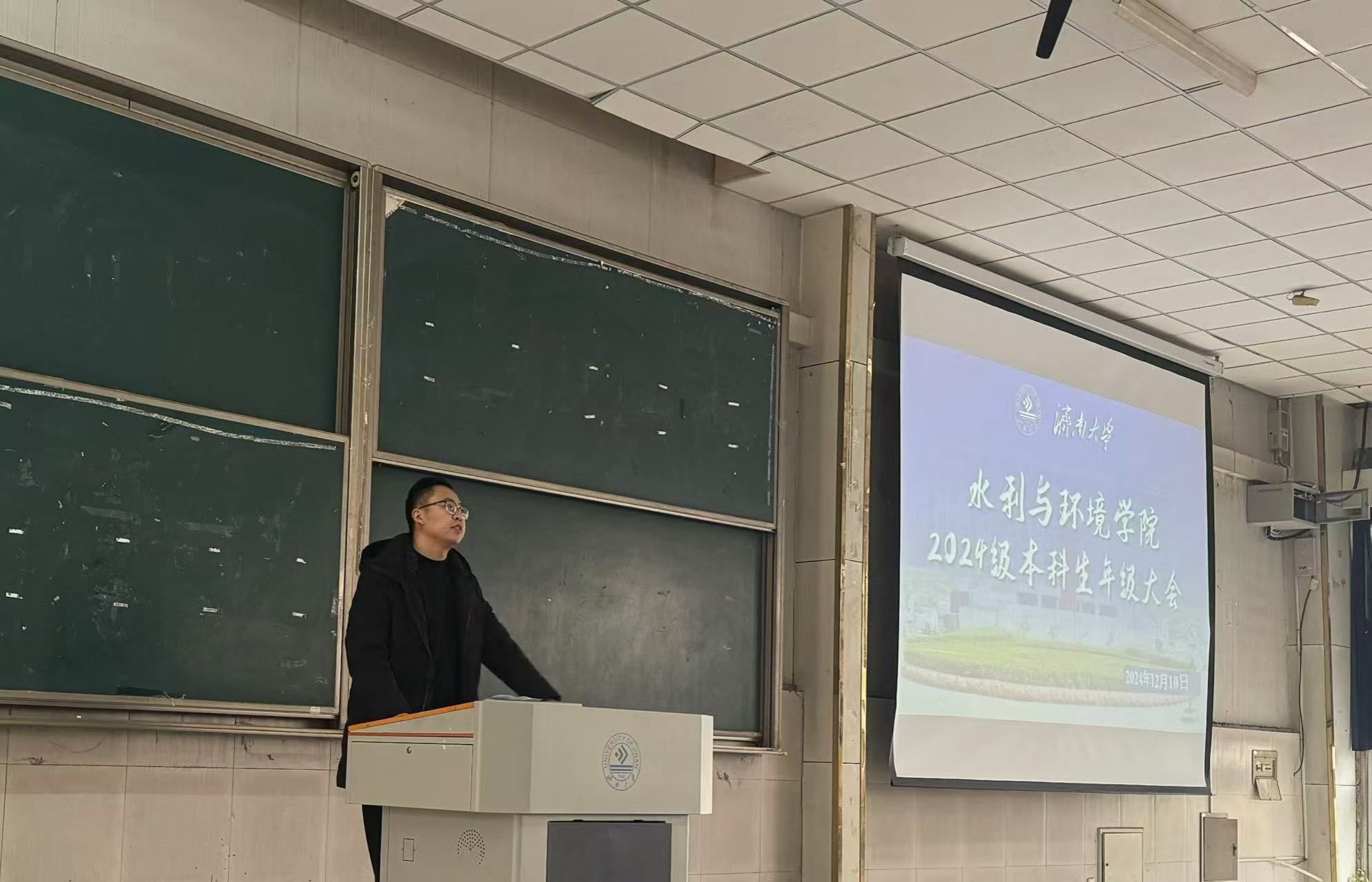 为加强学生安全意识,促进学生养成良好的生活学习习惯,增强年级的凝聚力和向心力,12月10日下午,水利与环境学院2024级本科生年级大会于济南大学星硕教室召开。会议由2024级本科生辅导员白健老师主持召开,2024级全体本科生参加。