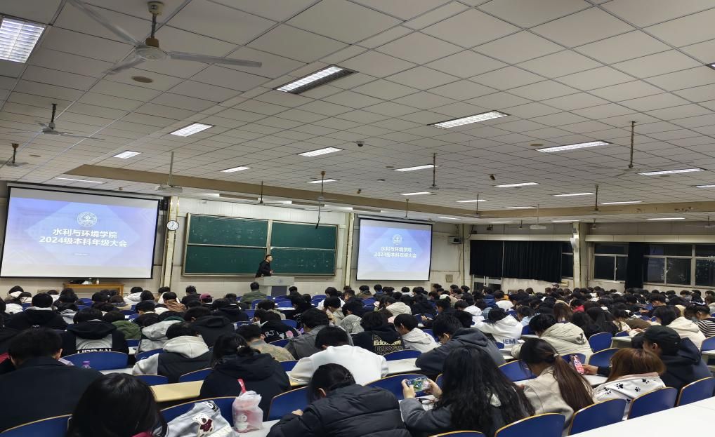 为进一步加强学生思想政治教育,强化安全意识,促进优良学风建设,10月20日晚19点,水利与环境学院2024级本科生年级大会于星硕教室召开。会议由2024级本科生辅导员白健老师主持,2024级全体本科生参加。