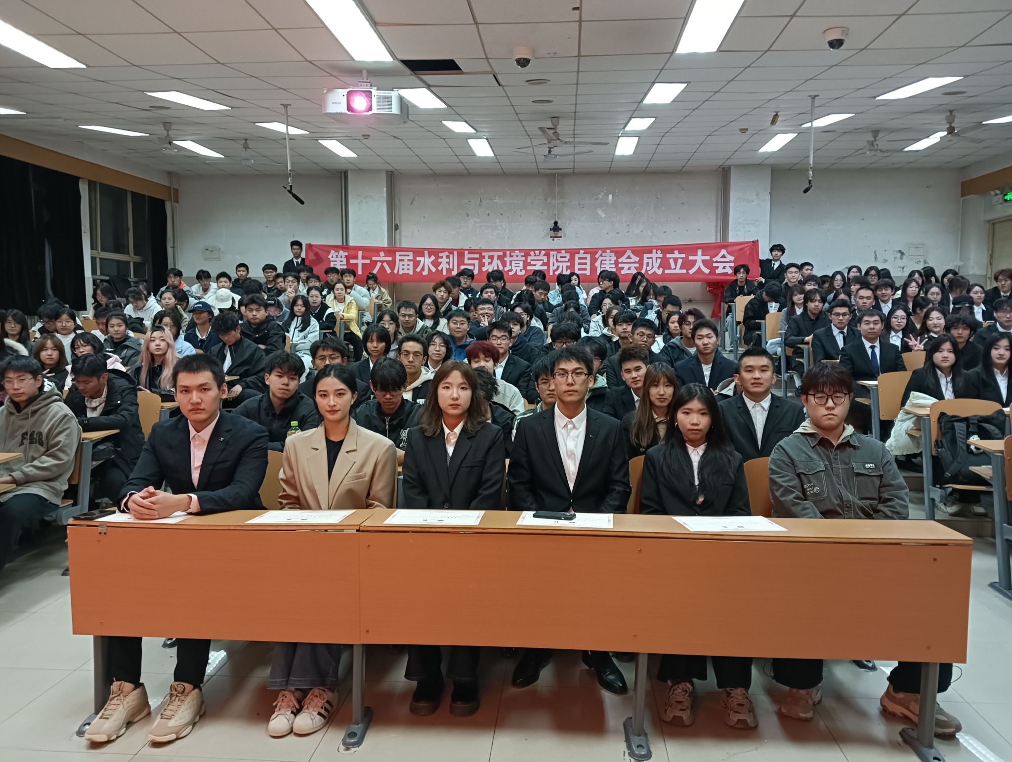 为进一步厘清自律会各部门的职责边界,规范工作流程,强化部门协同联动,提升组织凝聚力,形成相互促进和彼此学习的工作氛围,11月9日晚19点,水利与环境学院在第11教学楼1段201教室举办第十六届水利与环境学院自律会成立大会。水利与环境学院自律会全体成员参加本次活动。