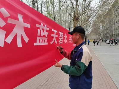 在八食堂的广场上,来来往往的同学驻足在“世界水日”条幅和宣传展板前,听志愿者讲解世界水日相关知识、保护水资源的重要性和紧迫性以及节水、护水小常识,志愿者们现场呼吁广大同学响应“世界水日”号召,从自身做起,珍惜水,爱护水,做水资源的守护者。志愿者们还对驻足观看的同学进行了现场采访,了解同学们对“世界水日”相关知识和节水护水常识的认识。在志愿者的号召下,同学们纷纷拿起笔,在“共沐蓝天碧水,共享绿树鲜花”的条幅上庄严地签下自己的名字。