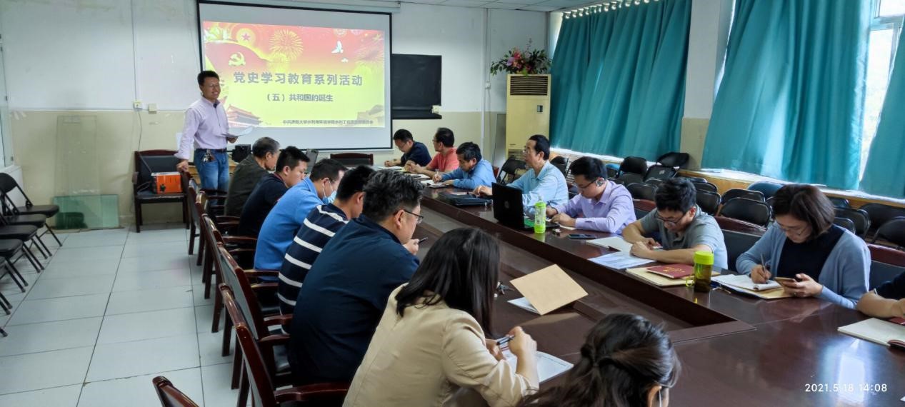 为响应学院党委关于党史学习教育的动员部署,践行“学史明理、学史增信、学史崇德、学史力行”,我院水利工程系党支部于2021年5月18日在9教301室召开党支部全体党员大会,开展第五次党史学习教育。会议由水利工程系党支部书记边振主持。