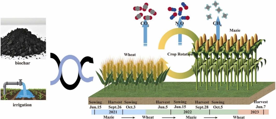 近日,济南大学水利与环境学院徐征和课题组在农林科学领域顶级期刊《Agricultural Water Management》(一区TOP)上发表了题为“Impact of biochar and deficit irrigation on greenhouse gas emissions reduction in maize-wheat rotation systems”的学术论文。我院博士后王天宇为第一作者,庞桂斌副教授为该论文的通讯作者。