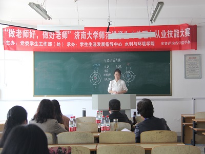 为适应新时代教师队伍建设改革要求,提升水利与环境学院师范生从业技能水平,为第九届山东省师范类高校学生从业技能大赛选拔人才,4月27日,济南大学水利与环境学院承办济南大学师范类学生(地理)从业大赛校级决赛。比赛邀请徐占福老师、吕淑琦老师担任校外嘉宾评委,周保华老师、解伏菊老师、刘展宏老师、宋鹏老师任校内评委。