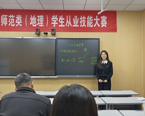 为进一步提高地理科学专业师范生教育教学能力,促进师范生综合素质提升,水利与环境学院于4月15日在9J212教室成功举办济南大学地理师范生从业技能大赛,大赛邀请济南市长清一中高级教师徐建、济南外国语学校正高级教师李秋林担任校外评委,济南大学水利与环境学院副院长庞桂斌、地理系系主任宋鹏、教授解伏菊、副教授刘展宏、罗芳担任校内评委。