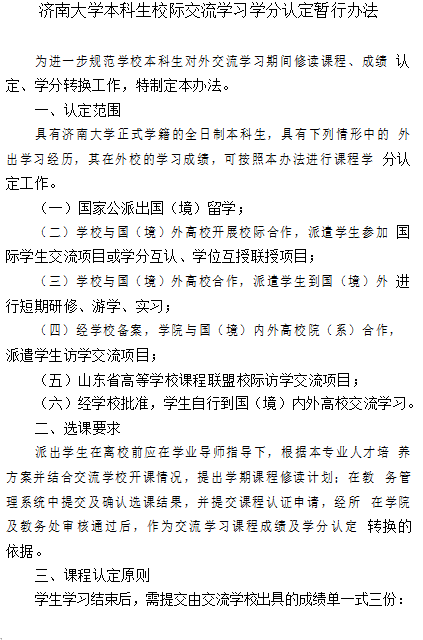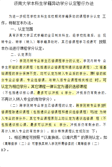 济南大学本科生学籍异动学分认定暂行办法
