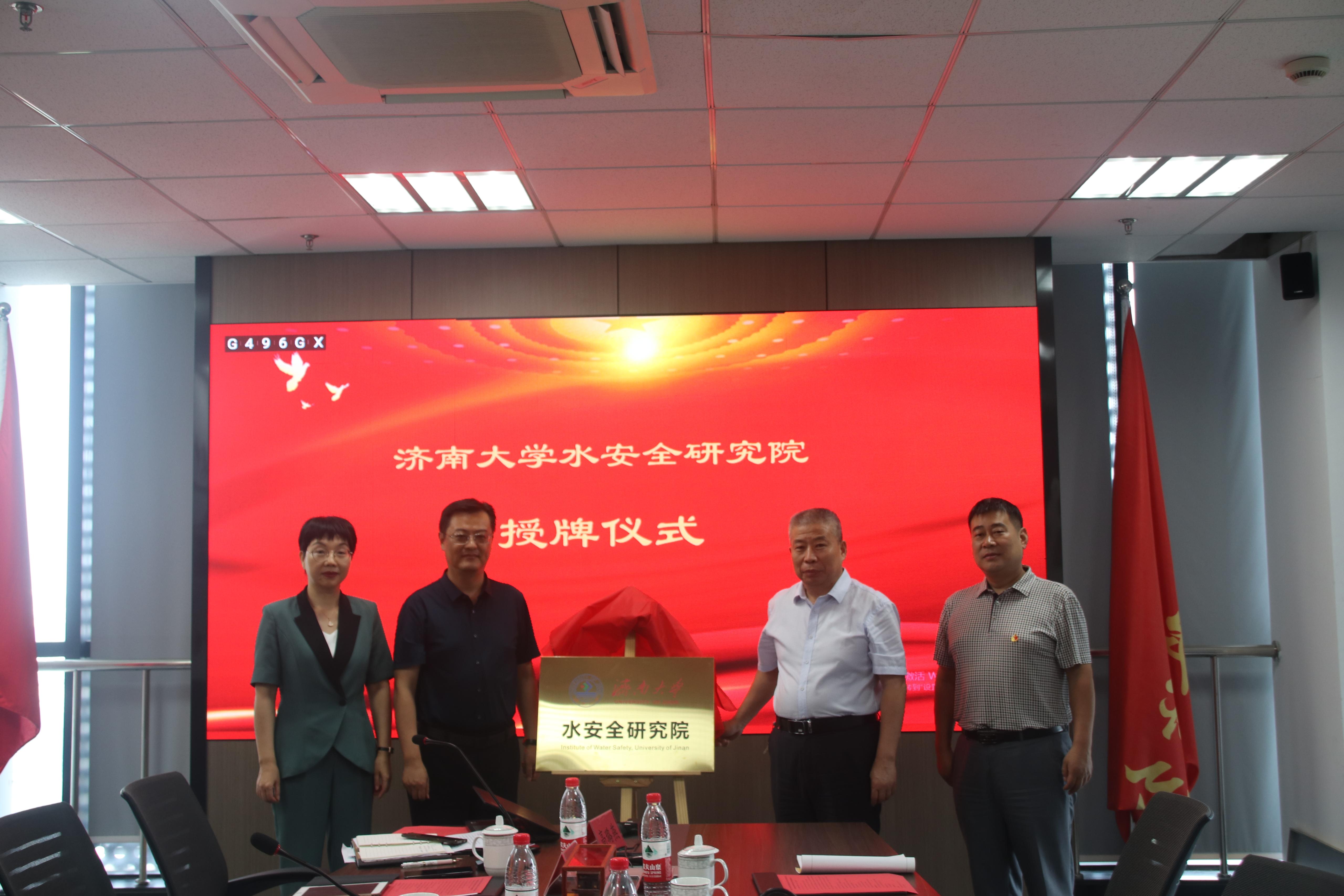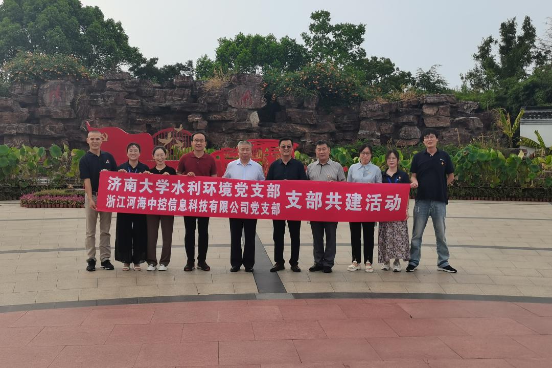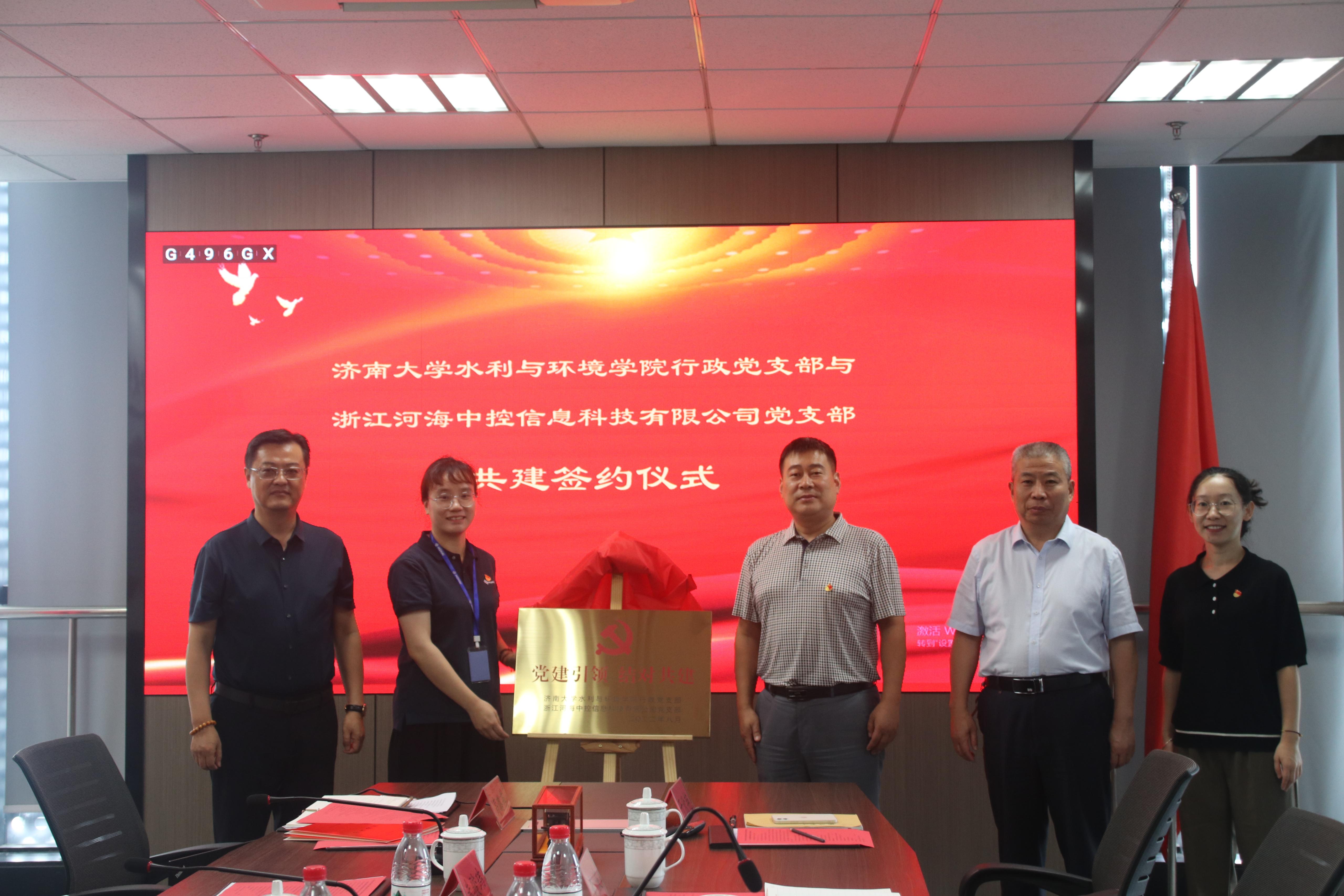 8月17日上午,水利与环境学院党委书记王义、院长徐征和及有关教师一行5人赴浙江河海中控信息科技有限公司开展合作共建活动,双方举行了“济南大学水安全研究院”揭牌暨党支部共建仪式。浙江河海中控信息科技有限公司董事长朱骏玮、总经办主任徐彬、党支部书记高璐燕等出席仪式。浙江省嘉兴市政协副主席、九三学社嘉兴市委会主委俞红平,浙江红船干部学院副院长、嘉兴市委党校副校长柴海生,九三学社嘉兴市委会专职副主委迮育彬等应邀出席活动。