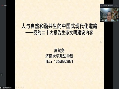为进一步深入学习宣传贯彻党的二十大精神,水利与环境学院邀请学校“百人宣讲团”成员、政法学院唐斌尧副教授作线上宣讲。宣讲会由学院党委书记王义主持,学院全体教师、学生党员共同听取了报告。