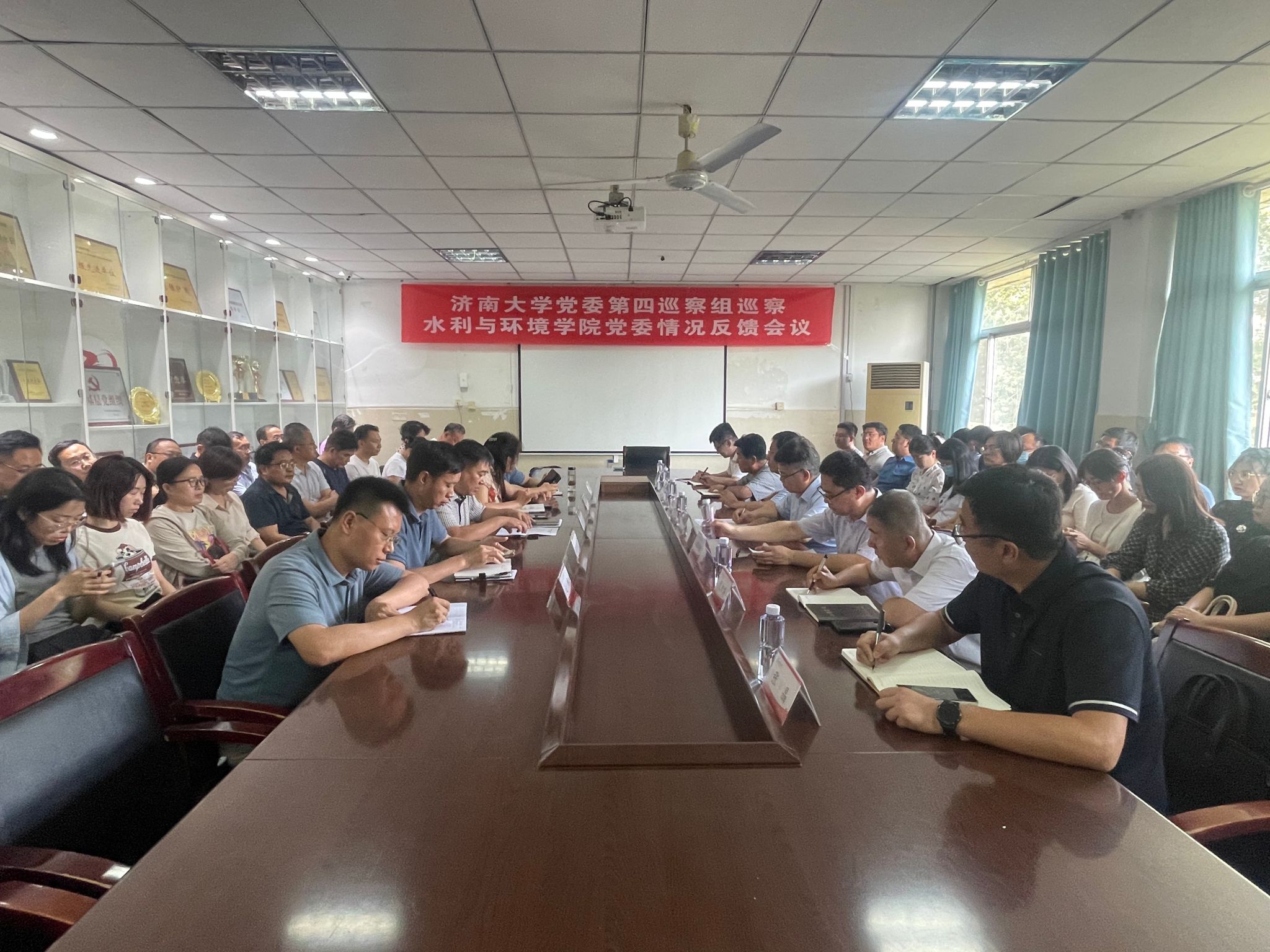 5月23日下午,济南大学党委第四巡察组巡察水利与环境学院党委情况反馈会议在第九教学楼301会议室召开。学校党委巡察工作领导小组办公室主任丁立波,党委第四巡察组组长张存凯,副组长朱帮全、侯启海,以及巡察组成员出席会议,水利与环境学院领导班子成员及全体教职工参加会议。会议由水利与环境学院党委书记王义主持。