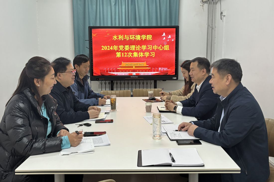 11月26日下午,水利与环境学院举行第十二次党委理论学习中心组集体学习,学校党委理论学习中心组成员列席旁听并指导学习。