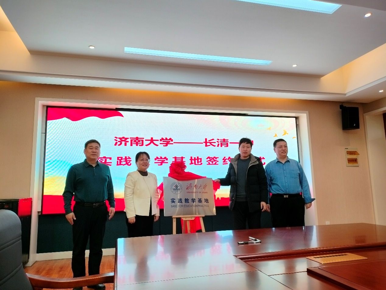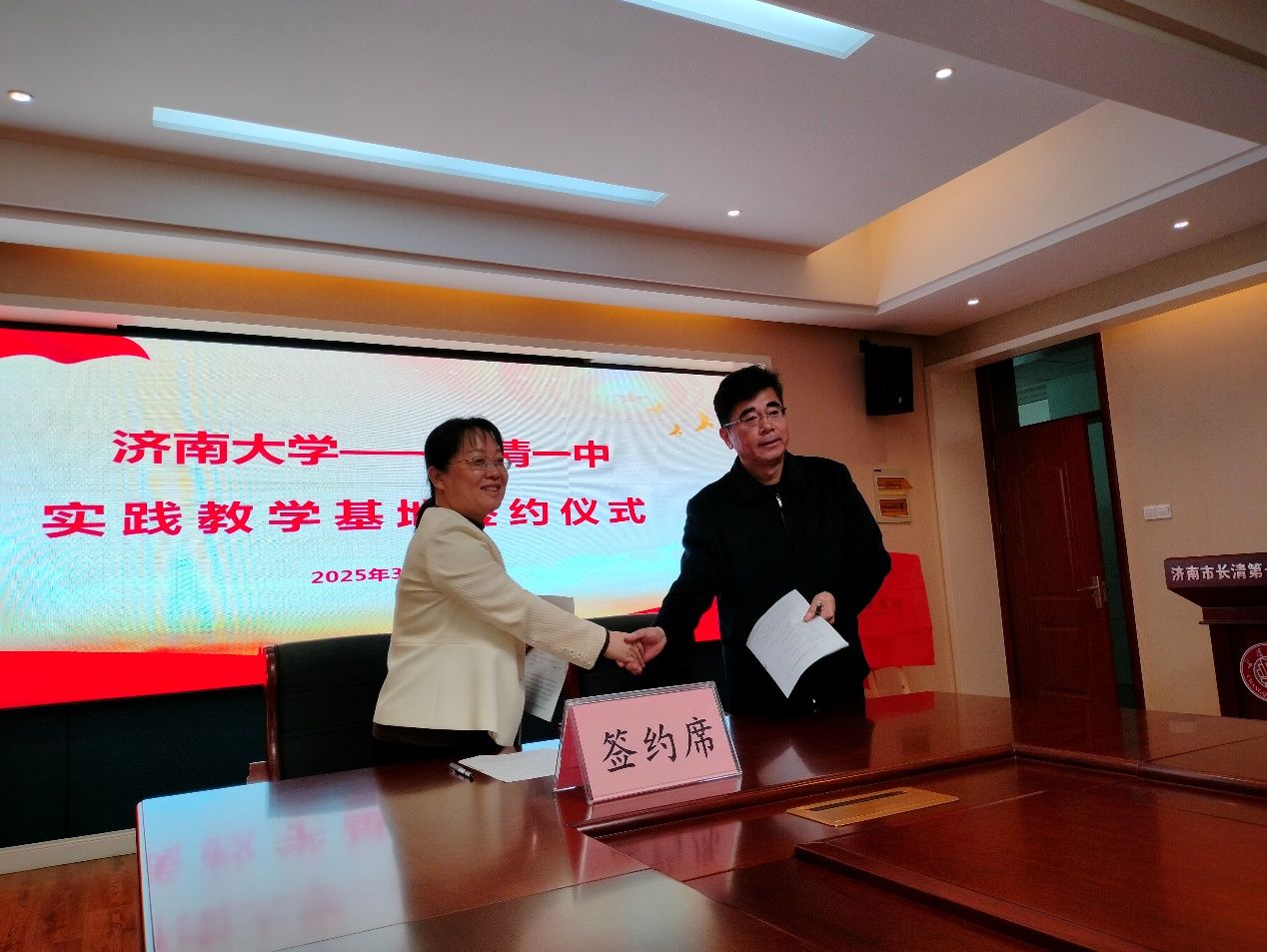 2025年3月5日下午,济南大学实践教学基地签约揭牌仪式在长清一中举行。济南市长清区教育体育局工会主席房泽平、长清区教育教学研究中心负责人刘光顺、长清一中副校长李春亮,济南大学教务处副处长兼师范教育管理办公室主任张婷、水利与环境学院党委书记王义、地理专业负责人刘展宏等出席了本次活动。