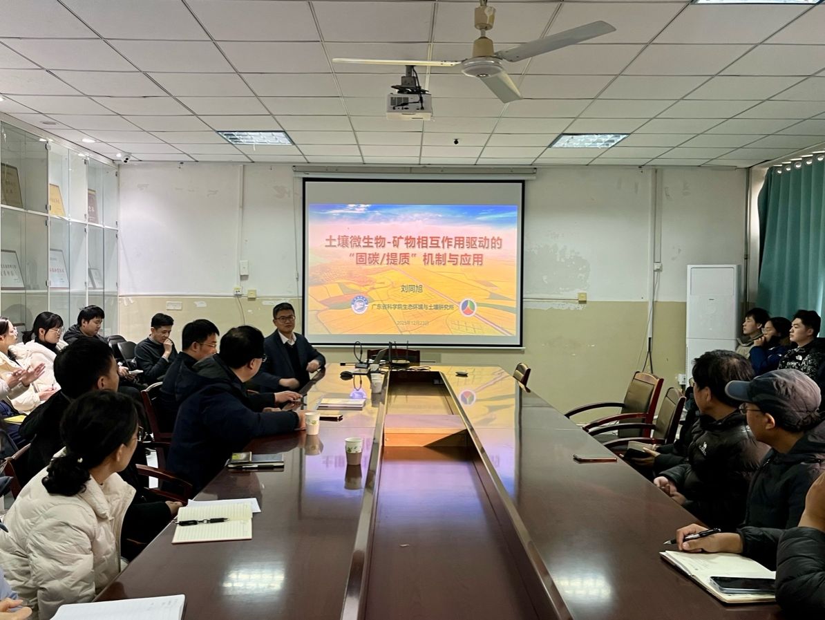 刘同旭研究员作了题为“土壤微生物-矿物相互作用驱动的“固碳/提质”机制与应用”的学术报告,并专题分享了国家自然科学基金申请经验。报告中,刘同旭研究员围绕红壤耕地质量提升的国家战略需求,系统阐述了土壤微生物-矿物相互作用在固碳增汇中的关键作用。他从机制解析、过程调控和技术验证三个维度,重点介绍了微生物-矿物协同固碳机理、多元素耦合转化模型构建以及功能菌剂与矿物材料协同调控技术等方面的创新成果。刘同旭研究员还特别分享了其团队在华南红壤区建立的全国首个稻田碳汇长期观测平台的建设经验。