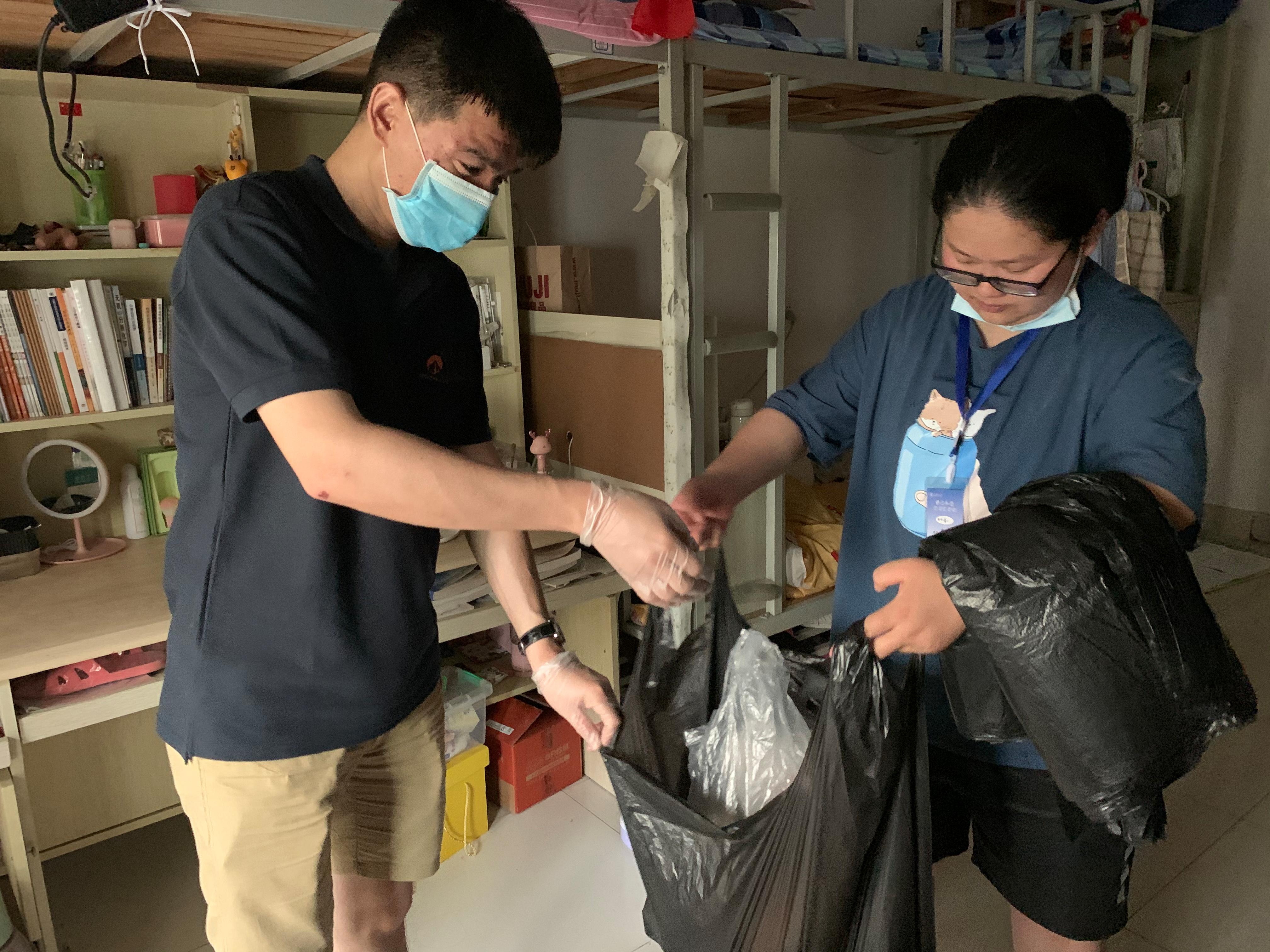 按照学校工作部署安排,为全面做好复学工作,坚决阻止疫情在学校传播扩散,给返校同学营造一个安全、干净、健康、美丽的学习和生活环境。6月8日,水利与环境学院党委副书记张良红带领辅导员和返校志愿者深入学生宿舍开展了“心系学生,抗疫爱卫”清洁活动。全方位的清理打扫,彻底消除了卫生死角,确保学生返校后有温馨的居住环境,全面筑牢开学前的第一道防护网。