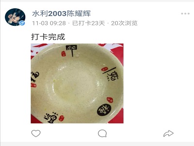 环抱碧水青年志愿协会于10月5日至11月8日开展“光盘行动,从我做起”线上打卡活动。
