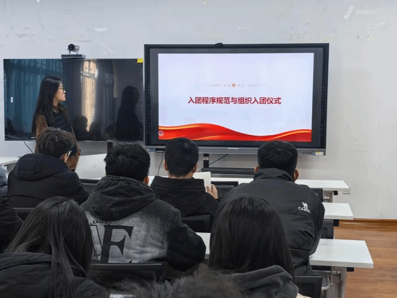 新团员代表程佳伊同学带领所有新发展团员进行宣誓。新发展团员们面对鲜红的团旗,庄严宣誓,郑重承诺为共青团事业献身,铭记入团初心,坚定共产主义远大理想和中国特色社会主义共同理想,为党和人民贡献青春力量。