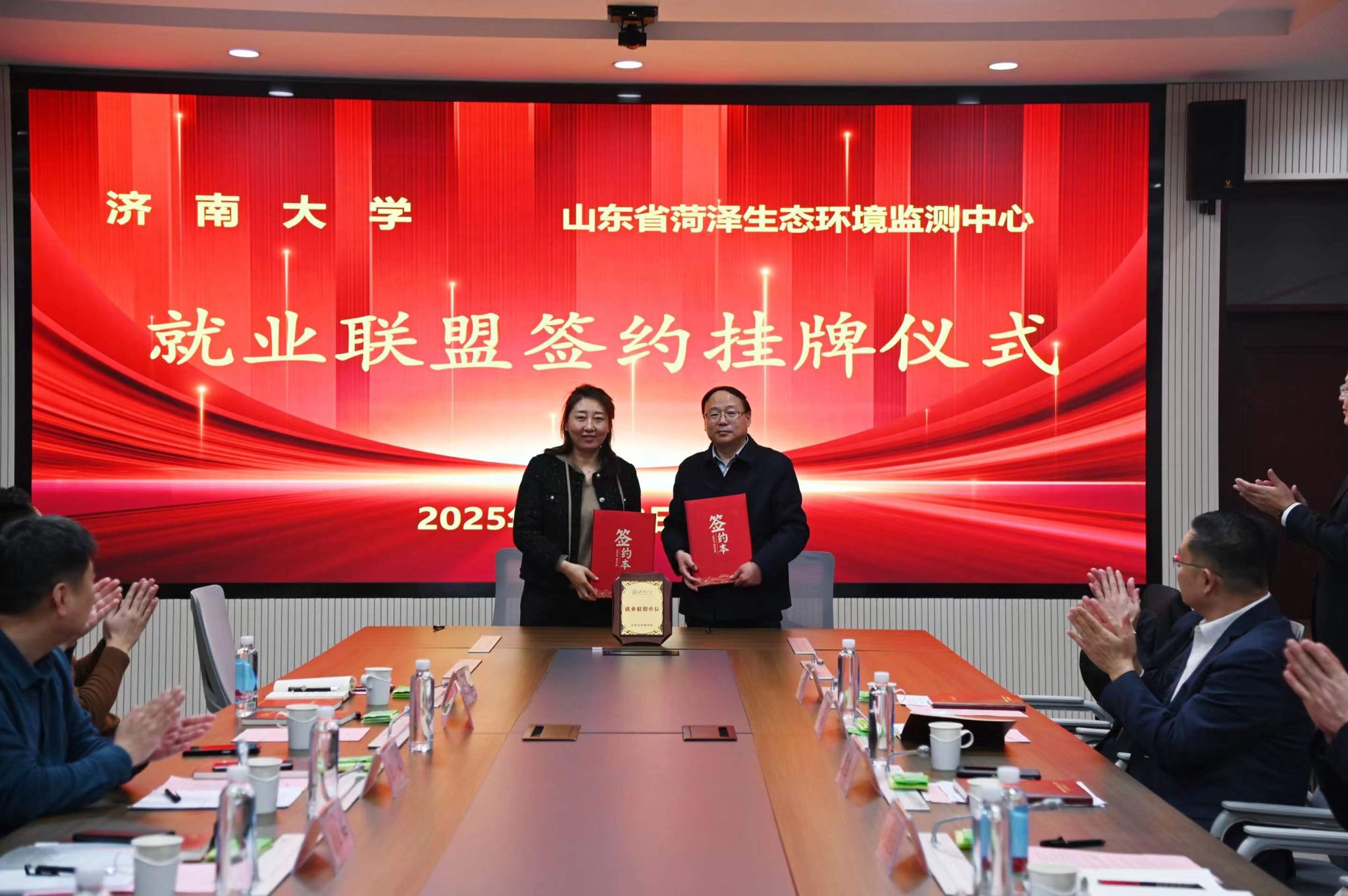 随后,赵连柱主持三方签约仪式。水利与环境学院党委书记王义与菏泽生态环境监测中心主任贾宝珍,水利与环境学院副书记副院长张良红与菏泽市水务集团有限公司常务副总经理李琦分别签署就业联盟协议。