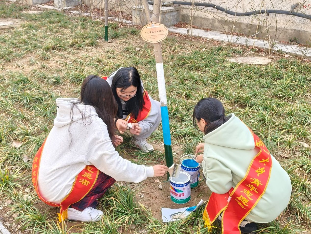学院团委组织志愿者开展了树木认养及养护活动,30余个团支部认养30余棵树木并悬挂专属认养牌。为确保树木健康生长,学院团委制定了详细的养护计划,包括定期浇水、季节性施肥、每月松土及病虫害检查等科学管理措施,增强学生对校园文化的认同感与归属感。