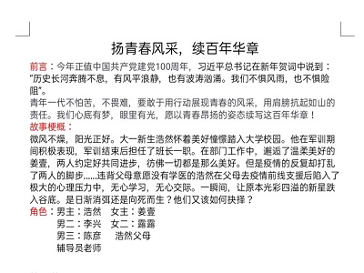 为提高当代大学生的心理素质,增强学生们对心理健康问题的重视程度,水利与环境学院参与济南大学心理发展服务中心开展的《向上吧!青年Ⅶ》心理情景剧剧本征集活动,其中作品《扬青春风采,续百年华章》荣获一等奖。