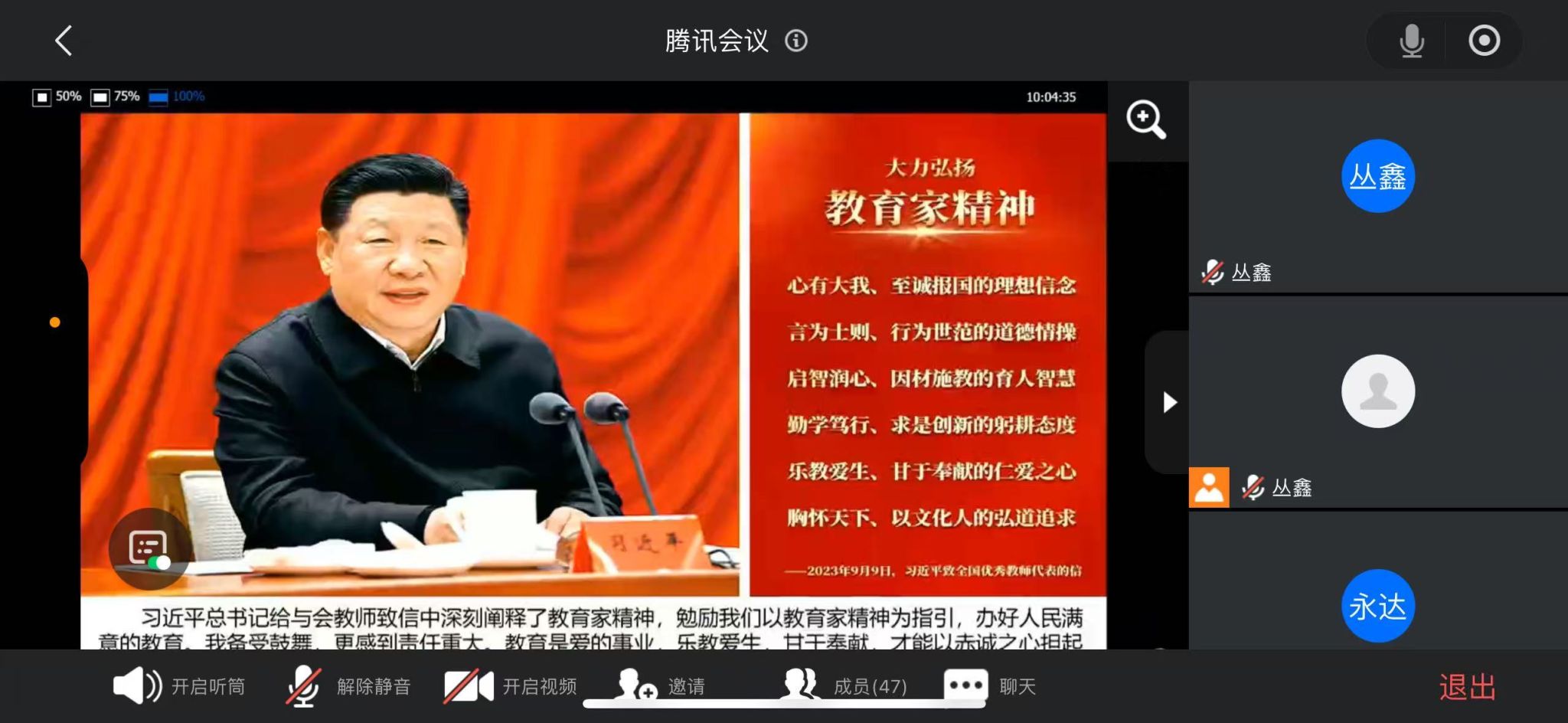 为深入学习贯彻习近平总书记关于教育的重要论述,推进教育家精神铸魂强师,4月24日上午,水利与环境学院组织学院全体教师、地理师范类学生线上集中收看山东省举办的“弘扬教育家精神”宣讲活动.
