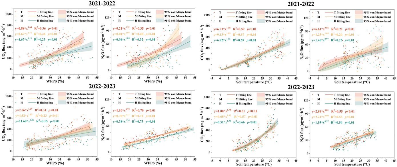 图2 土壤孔隙含水率(WFPS)、温度与温室气体排放之间的关系