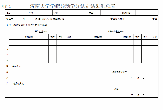 济南大学本科生学籍异动学分认定暂行办法